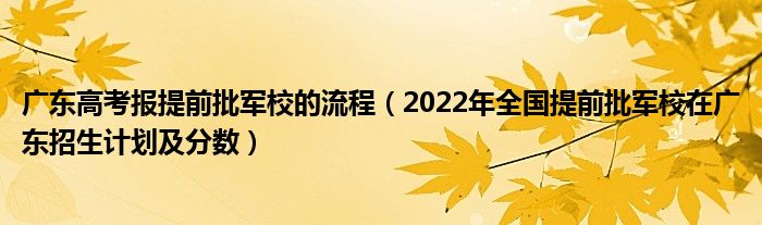 大家好,小高來為大家解答以上問題。廣東高考報提前批軍校的流程,2022年全國提前批軍校在廣東招生計劃及分數(shù)很多人還不知道,現(xiàn)在讓我們一起來看看吧!
