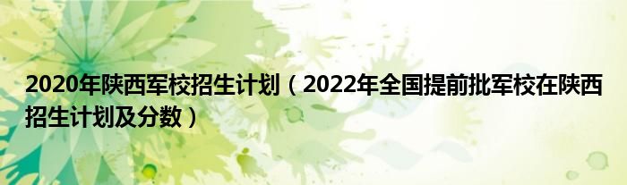 大家好,小高來為大家解答以上問題。2020年陜西軍校招生計劃,2022年全國提前批軍校在陜西招生計劃及分數(shù)很多人還不知道,現(xiàn)在讓我們一起來看看吧!