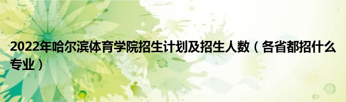 大家好,小高來為大家解答以上問題。2022年哈爾濱體育學(xué)院招生計劃及招生人數(shù),各省都招什么專業(yè)很多人還不知道,現(xiàn)在讓我們一起來看看吧!