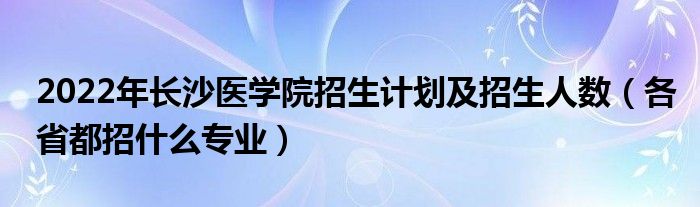 大家好,小高來為大家解答以上問題。2022年長沙醫(yī)學(xué)院招生計(jì)劃及招生人數(shù),各省都招什么專業(yè)很多人還不知道,現(xiàn)在讓我們一起來看看吧!