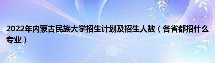大家好,小高來為大家解答以上問題。2022年內(nèi)蒙古民族大學(xué)招生計劃及招生人數(shù),各省都招什么專業(yè)很多人還不知道,現(xiàn)在讓我們一起來看看吧!