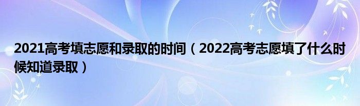 大家好,小高來(lái)為大家解答以上問(wèn)題。2021高考填志愿和錄取的時(shí)間,2022高考志愿填了什么時(shí)候知道錄取很多人還不知道,現(xiàn)在讓我們一起來(lái)看看吧!