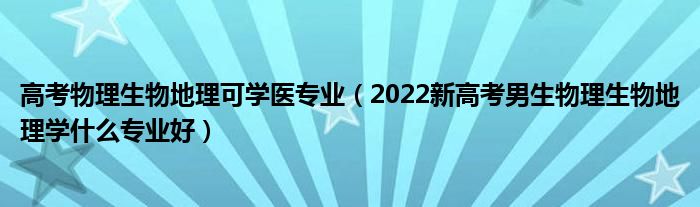 大家好,小高來(lái)為大家解答以上問(wèn)題。高考物理生物地理可學(xué)醫(yī)專業(yè),2022新高考男生物理生物地理學(xué)什么專業(yè)好很多人還不知道,現(xiàn)在讓我們一起來(lái)看看吧!