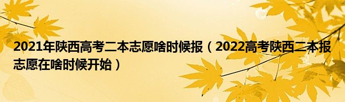 大家好,小高來為大家解答以上問題。2021年陜西高考二本志愿啥時(shí)候報(bào),2022高考陜西二本報(bào)志愿在啥時(shí)候開始很多人還不知道,現(xiàn)在讓我們一起來看看吧!