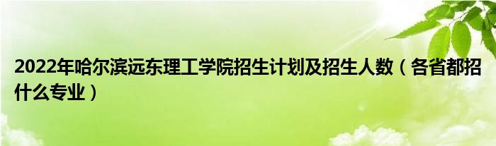 大家好,小高來(lái)為大家解答以上問(wèn)題。2022年哈爾濱遠(yuǎn)東理工學(xué)院招生計(jì)劃及招生人數(shù),各省都招什么專業(yè)很多人還不知道,現(xiàn)在讓我們一起來(lái)看看吧!