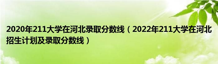 大家好,小高來為大家解答以上問題。2020年211大學(xué)在河北錄取分?jǐn)?shù)線,2022年211大學(xué)在河北招生計劃及錄取分?jǐn)?shù)線很多人還不知道,現(xiàn)在讓我們一起來看看吧!