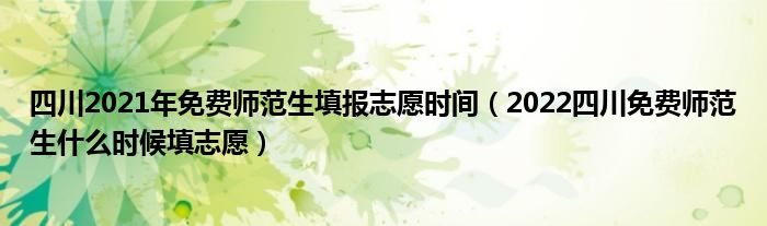大家好,小高來(lái)為大家解答以上問(wèn)題。四川2021年免費(fèi)師范生填報(bào)志愿時(shí)間,2022四川免費(fèi)師范生什么時(shí)候填志愿很多人還不知道,現(xiàn)在讓我們一起來(lái)看看吧!