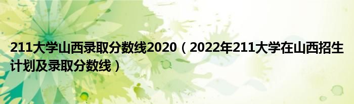 大家好,小高來為大家解答以上問題。211大學(xué)山西錄取分?jǐn)?shù)線2020,2022年211大學(xué)在山西招生計(jì)劃及錄取分?jǐn)?shù)線很多人還不知道,現(xiàn)在讓我們一起來看看吧!