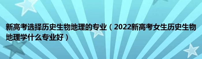 大家好,小高來為大家解答以上問題。新高考選擇歷史生物地理的專業(yè),2022新高考女生歷史生物地理學(xué)什么專業(yè)好很多人還不知道,現(xiàn)在讓我們一起來看看吧!