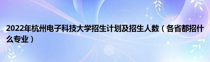 大家好,小高來為大家解答以上問題。2022年杭州電子科技大學(xué)招生計(jì)劃及招生人數(shù),各省都招什么專業(yè)很多人還不知道,現(xiàn)在讓我們一起來看看吧!