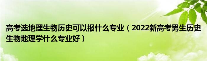 大家好,小高來(lái)為大家解答以上問(wèn)題。高考選地理生物歷史可以報(bào)什么專業(yè),2022新高考男生歷史生物地理學(xué)什么專業(yè)好很多人還不知道,現(xiàn)在讓我們一起來(lái)看看吧!