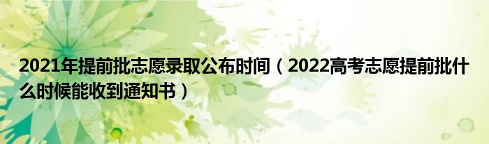 大家好,小高來為大家解答以上問題。2021年提前批志愿錄取公布時間,2022高考志愿提前批什么時候能收到通知書很多人還不知道,現(xiàn)在讓我們一起來看看吧!