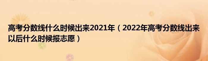 大家好,小高來為大家解答以上問題。高考分?jǐn)?shù)線什么時(shí)候出來2021年,2022年高考分?jǐn)?shù)線出來以后什么時(shí)候報(bào)志愿很多人還不知道,現(xiàn)在讓我們一起來看看吧!