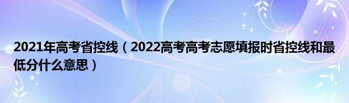 大家好,小高來為大家解答以上問題。2021年高考省控線,2022高考高考志愿填報時省控線和最低分什么意思很多人還不知道,現(xiàn)在讓我們一起來看看吧!