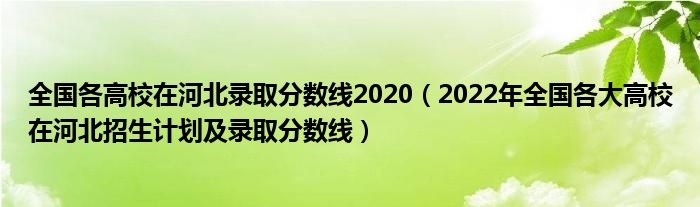大家好,小高來為大家解答以上問題。全國各高校在河北錄取分?jǐn)?shù)線2020,2022年全國各大高校在河北招生計(jì)劃及錄取分?jǐn)?shù)線很多人還不知道,現(xiàn)在讓我們一起來看看吧!