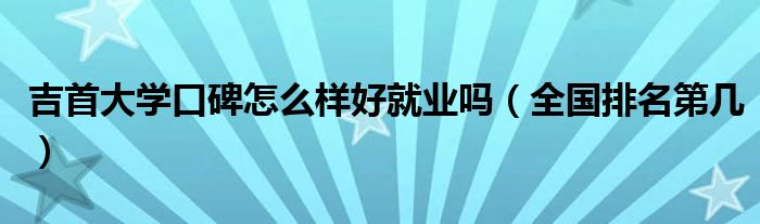 大家好,小高來為大家解答以上問題。吉首大學(xué)口碑怎么樣好就業(yè)嗎,全國排名第幾很多人還不知道,現(xiàn)在讓我們一起來看看吧!