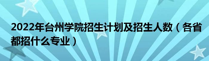 大家好,小高來為大家解答以上問題。2022年臺(tái)州學(xué)院招生計(jì)劃及招生人數(shù),各省都招什么專業(yè)很多人還不知道,現(xiàn)在讓我們一起來看看吧!