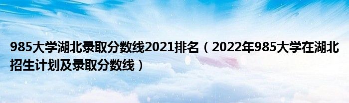 大家好,小高來(lái)為大家解答以上問(wèn)題。985大學(xué)湖北錄取分?jǐn)?shù)線2021排名,2022年985大學(xué)在湖北招生計(jì)劃及錄取分?jǐn)?shù)線很多人還不知道,現(xiàn)在讓我們一起來(lái)看看吧!