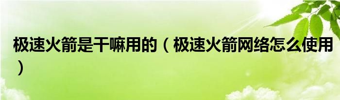 大家好,小育來為大家講解下。極速火箭是干嘛用的,極速火箭網(wǎng)絡(luò)怎么使用很多人還不知道,現(xiàn)在讓我們一起來看看吧!