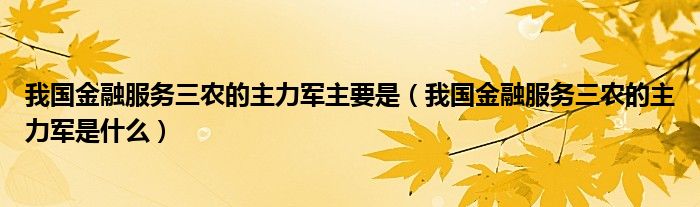 大家好,小育來為大家講解下。我國金融服務(wù)三農(nóng)的主力軍主要是,我國金融服務(wù)三農(nóng)的主力軍是什么很多人還不知道,現(xiàn)在讓我們一起來看看吧!
