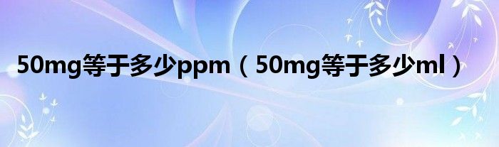 大家好,小育來為大家講解下。50mg等于多少ppm,50mg等于多少ml很多人還不知道,現(xiàn)在讓我們一起來看看吧!