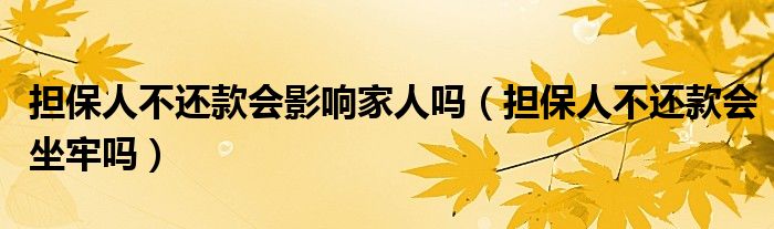 大家好,小育來(lái)為大家講解下。擔(dān)保人不還款會(huì)影響家人嗎,擔(dān)保人不還款會(huì)坐牢嗎很多人還不知道,現(xiàn)在讓我們一起來(lái)看看吧!