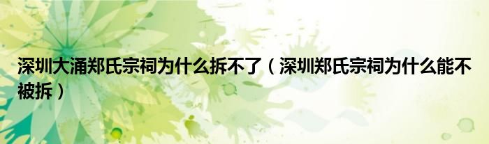大家好,小育來為大家講解下。深圳大涌鄭氏宗祠為什么拆不了,深圳鄭氏宗祠為什么能不被拆很多人還不知道,現(xiàn)在讓我們一起來看看吧!
