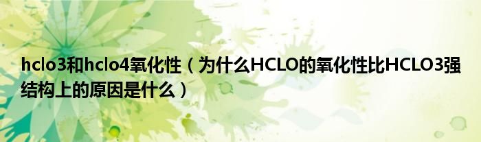 大家好,小育來(lái)為大家講解下。hclo3和hclo4氧化性,為什么HCLO的氧化性比HCLO3強(qiáng)結(jié)構(gòu)上的原因是什么很多人還不知道,現(xiàn)在讓我們一起來(lái)看看吧!