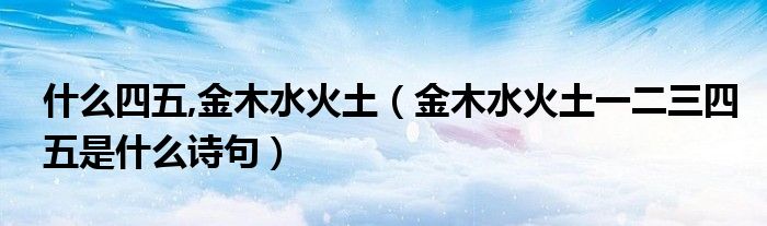 大家好,小育來為大家講解下。什么四五,金木水火土,金木水火土一二三四五是什么詩句很多人還不知道,現(xiàn)在讓我們一起來看看吧!