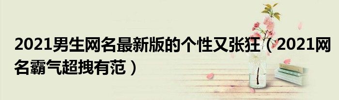 大家好,伊人來為大家解答以上問題。2021男生網(wǎng)名最新版的個性又張狂,2021網(wǎng)名霸氣超拽有范很多人還不知道,現(xiàn)在讓我們一起來看看吧!