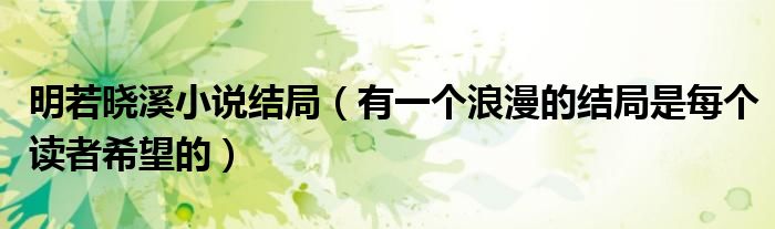 大家好,伊人來為大家解答以上問題。明若曉溪小說結(jié)局,有一個浪漫的結(jié)局是每個讀者希望的很多人還不知道,現(xiàn)在讓我們一起來看看吧!