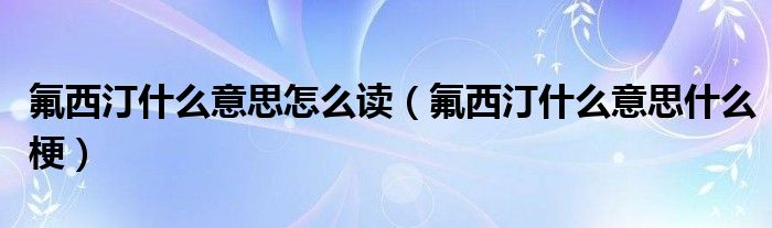 大家好,小育來為大家講解下。氟西汀什么意思怎么讀,氟西汀什么意思什么梗很多人還不知道,現(xiàn)在讓我們一起來看看吧!