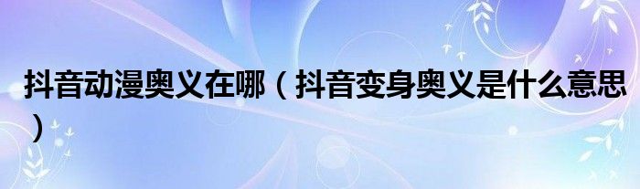 大家好,小育來為大家講解下。抖音動漫奧義在哪,抖音變身奧義是什么意思很多人還不知道,現(xiàn)在讓我們一起來看看吧!