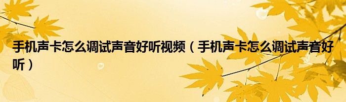 大家好,小育來為大家講解下。手機聲卡怎么調試聲音好聽視頻,手機聲卡怎么調試聲音好聽很多人還不知道,現在讓我們一起來看看吧!
