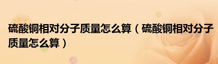 大家好,小育來為大家講解下。硫酸銅相對分子質(zhì)量怎么算,硫酸銅相對分子質(zhì)量怎么算很多人還不知道,現(xiàn)在讓我們一起來看看吧!