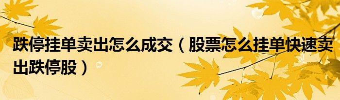 大家好,小育來為大家講解下。跌停掛單賣出怎么成交,股票怎么掛單快速賣出跌停股很多人還不知道,現(xiàn)在讓我們一起來看看吧!