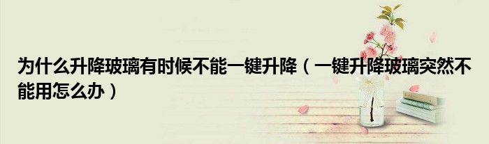大家好,小育來為大家講解下。為什么升降玻璃有時候不能一鍵升降,一鍵升降玻璃突然不能用怎么辦很多人還不知道,現(xiàn)在讓我們一起來看看吧!