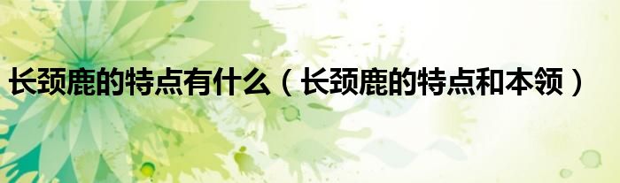 大家好,小育來為大家講解下。長頸鹿的特點(diǎn)有什么,長頸鹿的特點(diǎn)和本領(lǐng)很多人還不知道,現(xiàn)在讓我們一起來看看吧!