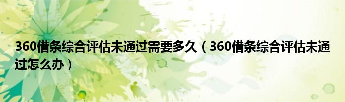 大家好,小育來為大家講解下。360借條綜合評估未通過需要多久,360借條綜合評估未通過怎么辦很多人還不知道,現(xiàn)在讓我們一起來看看吧!