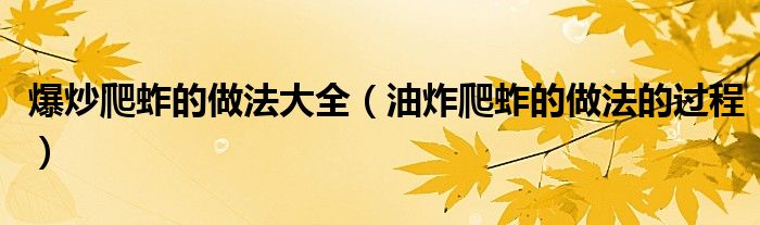 大家好,小育來為大家講解下。爆炒爬蚱的做法大全,油炸爬蚱的做法的過程很多人還不知道,現(xiàn)在讓我們一起來看看吧!