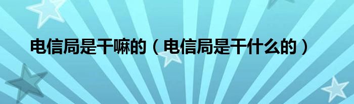 大家好,小育來為大家講解下。電信局是干嘛的,電信局是干什么的很多人還不知道,現(xiàn)在讓我們一起來看看吧!