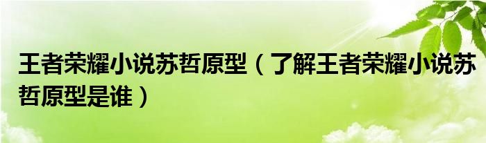 大家好,伊人來(lái)為大家解答以上問(wèn)題。王者榮耀小說(shuō)蘇哲原型,了解王者榮耀小說(shuō)蘇哲原型是誰(shuí)很多人還不知道,現(xiàn)在讓我們一起來(lái)看看吧!