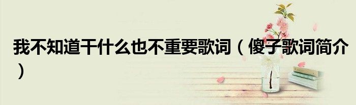 大家好,伊人來為大家解答以上問題。我不知道干什么也不重要歌詞,傻子歌詞簡介很多人還不知道,現(xiàn)在讓我們一起來看看吧!