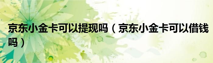 大家好,小育來為大家講解下。京東小金卡可以提現(xiàn)嗎,京東小金卡可以借錢嗎很多人還不知道,現(xiàn)在讓我們一起來看看吧!