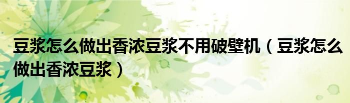 大家好,小育來為大家講解下。豆?jié){怎么做出香濃豆?jié){不用破壁機,豆?jié){怎么做出香濃豆?jié){很多人還不知道,現(xiàn)在讓我們一起來看看吧!