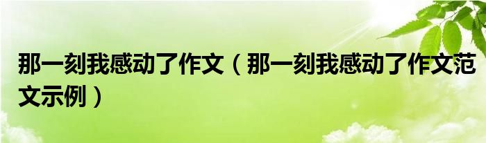大家好,伊人來(lái)為大家解答以上問(wèn)題。那一刻我感動(dòng)了作文,那一刻我感動(dòng)了作文范文示例很多人還不知道,現(xiàn)在讓我們一起來(lái)看看吧!