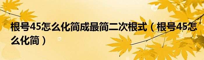 大家好,小育來為大家講解下。根號45怎么化簡成最簡二次根式,根號45怎么化簡很多人還不知道,現(xiàn)在讓我們一起來看看吧!