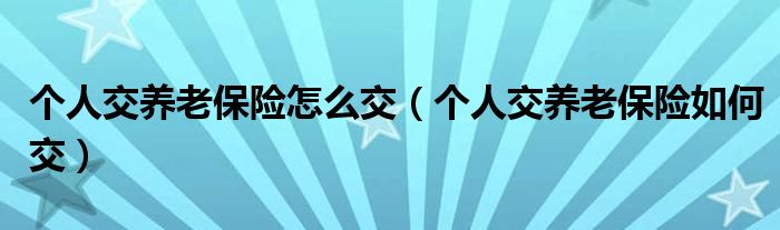大家好,伊人來為大家解答以上問題。個(gè)人交養(yǎng)老保險(xiǎn)怎么交,個(gè)人交養(yǎng)老保險(xiǎn)如何交很多人還不知道,現(xiàn)在讓我們一起來看看吧!