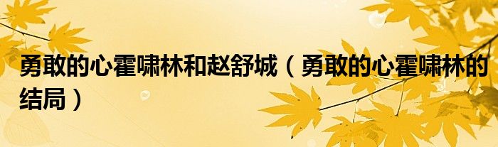 大家好,小育來為大家講解下。勇敢的心霍嘯林和趙舒城,勇敢的心霍嘯林的結(jié)局很多人還不知道,現(xiàn)在讓我們一起來看看吧!