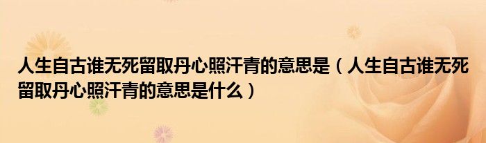 大家好,小育來為大家講解下。人生自古誰無死留取丹心照汗青的意思是,人生自古誰無死留取丹心照汗青的意思是什么很多人還不知道,現(xiàn)在讓我們一起來看看吧!